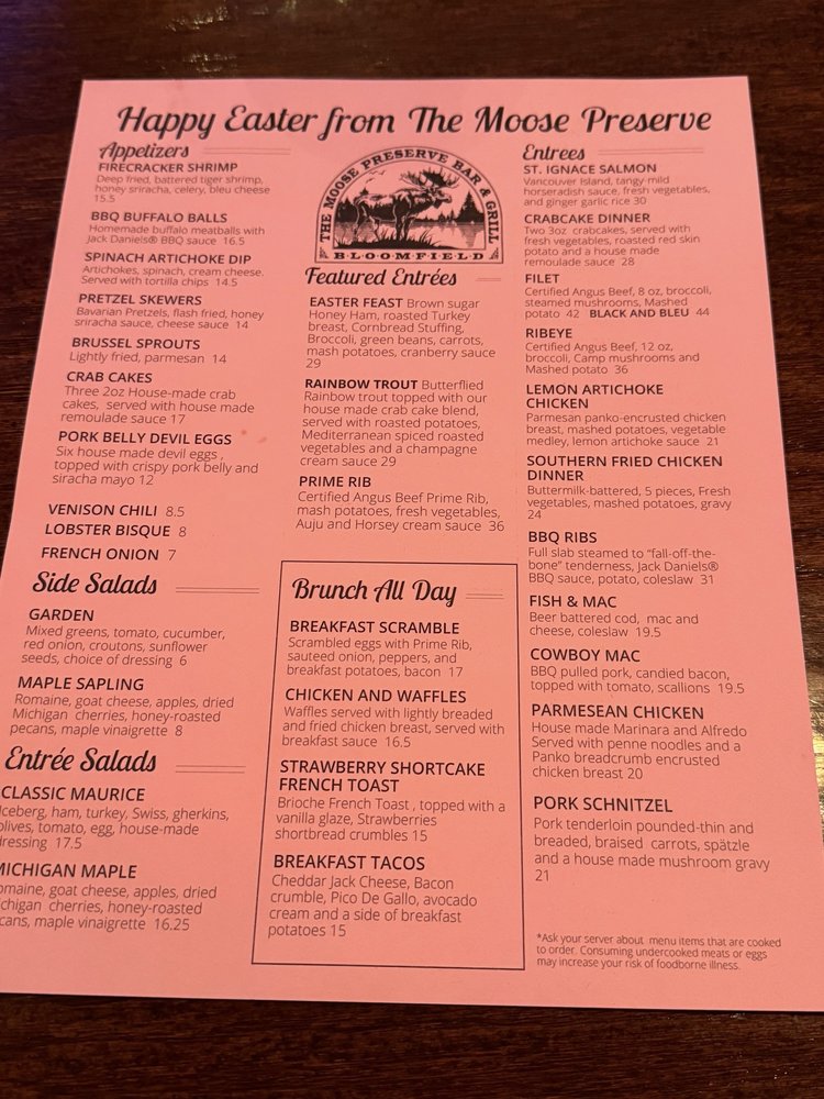 Introducing The Moose Preserve Bar & Grill, a vibrant establishment located in Bloomfield Hills, MI. This bar and grill offers a diverse menu with American and Mexican cuisine, including delicious sandwiches like the Black Bean Burger and the Brie & Apple Grilled Cheese. For salad lovers, they have options like the Moose Chopped Chicken Salad and the Bleu Cheese Harvest Salad. Their signature appetizer, the Drunken Buck Cheese Dip, is a crowd favorite. With various amenities such as outdoor seating, pool table, and free Wi-Fi, The Moose Preserve is the perfect spot for a casual dining experience. Don't miss their happy hour specials on Thursdays and enjoy a full bar selection. Make a reservation or grab some takeout to savor the flavorful dishes at The Moose Preserve Bar & Grill.